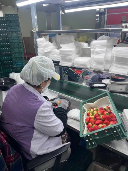 Không chỉ chú trọng vào chất lượng dâu tây, quy trình thu hoạch và đóng gói tại đây cũng được thực hiện một cách khoa học. Ngay sau khi hái, dâu tây sẽ được kiểm tra chất lượng, phân loại và làm lạnh nhanh để giữ độ tươi ngon. Những trái dâu đạt tiêu chuẩn xuất khẩu sẽ được đóng gói trong hộp chuyên dụng, giúp bảo vệ quả khỏi va đập trong suốt quá trình vận chuyển về Việt Nam.