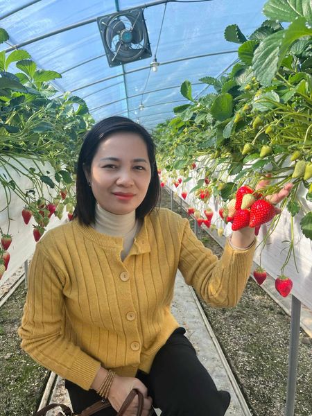 Bà Nguyễn Thị Huyền Trang (Giám đốc Hoàng Giang Fruit) tại trang trại dâu Nonsan, Hàn Quốc