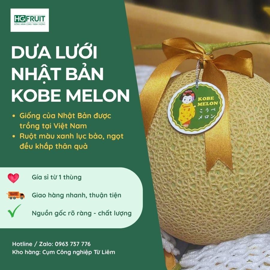 Hãy để Dưa Giống Nhật Kobe Melon trở thành điểm nhấn sang trọng trên kệ hàng của bạn! Với chất lượng thượng hạng, giá sỉ hấp dẫn và dịch vụ giao hàng nhanh chóng từ Hoàng Giang Fruit, bạn sẽ dễ dàng chinh phục khách hàng và nâng cao lợi nhuận.